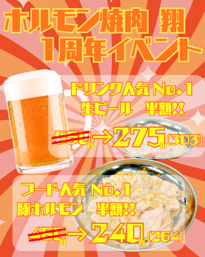 🎉ホルモン焼肉 翔 1周年イベント開催!🎉
